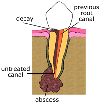Sometimes a patient may have no symptoms, but an x-ray shows that there is a problem with a tooth that has previously undergone root canal therapy.